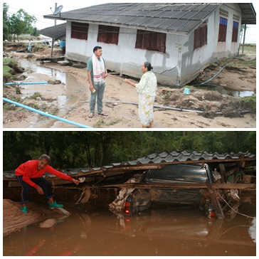 สุราษฎร์ธานี 8 ม.ค.- สุราษฎร์ฯ สำรวจความเสียหายหลังน้ำป่าหลากจากฝนตกหนัก บ้านเรือน อ.ท่าชนะ ทรุดตัว น้ำเซาะดิน-ถนน พัดเป็ดหายนับร้อยตัว