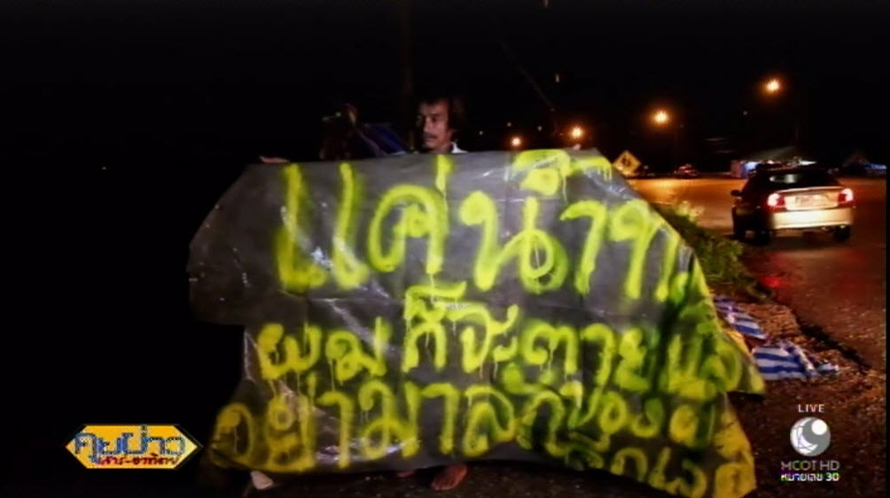 ตรัง 8 ม.ค. – นายจำรัส สืบสำราญ อายุ 47 ปี คนงานก่อสร้างชาวนครราชสีมา เป็นช่างทั่วไปของบริษัทรับเหมาก่อสร้างที่มารับเหมาขุดลอกคลองชลประทาน โครงการระบบระบายน้ำแม่น้ำตรัง อ.เมืองตรัง ที่บริเวณคลองช้าง มาทำงานได้แค่วันเดียวหลังจากหยุดปีใหม่ แต่มาเจอฝนตกน้ำท่วมหนัก ต้องอพยพจากแคมป์มานอนข้างถนนตรัง-สิเกา ต.บางรัก อ.เมืองตรัง กลับถูกมือดีขโมยเงินใต้ที่นอนไป 50 บาท ถามเพื่อน เพื่อนบอกว่าไม่เห็น จึงคิดว่าต้องมีคนมาขโมยเงินไป แม้จะเป็นเงินจำนวนไม่มาก แต่ก็มีค่าสำหรับตนและเพื่อนมาก เพราะ 2 คนมีเงินรวมกันแค่ 200-300 บาท อารมณ์เสียจึงเขียนป้ายประชดโจรเพื่อระบายความอัดอั้น มีข้อความว่า “แค่น้ำท่วมผมก็จะตายแล้ว อย่ามาลักของอีกเลย”
