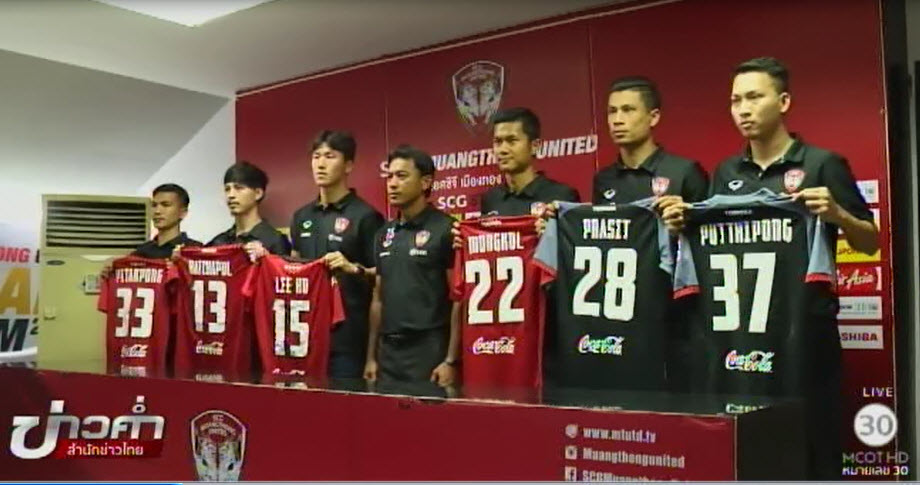 นายพงษ์ศักดิ์ ผลอนันต์ ประธานสโมสรเอสซีจี เมืองทอง ยูไนเต็ด และ “โค้ชแบน” ธชตวัน ศรีปาน หัวหน้าผู้ฝึกสอน เปิดตัว 6 นักเตะใหม่ของทีม “กิเลนผยอง” ที่จะใช้สู้ศึกไทยลีก 2017 นำโดย มงคล ทศไกร ริมเส้นทีมชาติไทย ที่ยืมตัวมาจากอาร์มี่ ยูไนเต็ด ลี โฮ แนวรับชาวเกาหลีใต้ ดีกรีแชมป์เอเอฟซี แชมเปี้ยนส์ ลีก จากทีมชุนบุค ฮุนได มอเตอร์ส รัชพล นาวันโน กองกลางตัวรับจากชัยนาท ฮอร์นบิล รวมทั้งพิทักษ์พงษ์ กุลสุวรรณ , ประสิทธิ์ ผดุงโชค และ พุทธิพงษ์ พรมลี สามดาวเตะจากบีอีซี เทโรศาสน