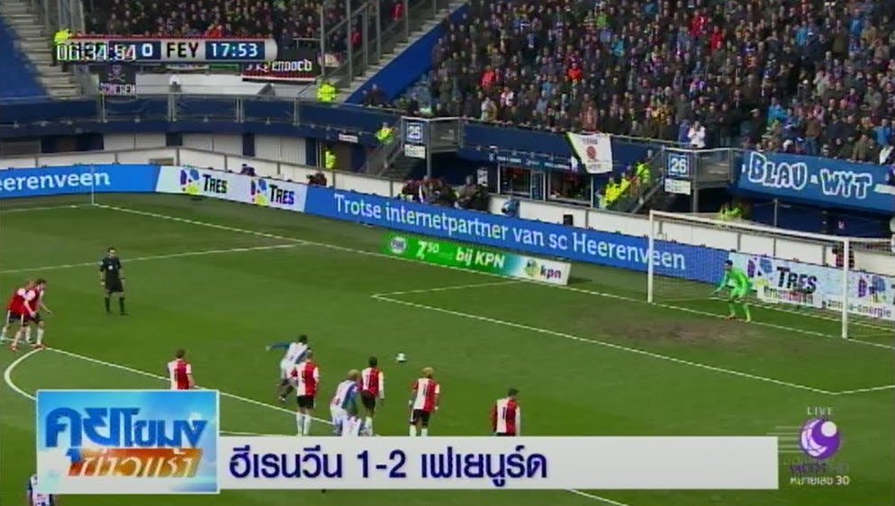ฟุตบอลเอเรดิวิซี่ ลีก ของฮอลแลนด์ นัดที่ 27 ช่อง MCOT Family หมายเลข 14 ถ่ายทอดสด ฮีเรนวีน เสื้อขาวสลับน้ำเงิน เปิดบ้านพบกับ เฟเยนูร์ด ร็อตเธอร์ดัม จ่าฝูง