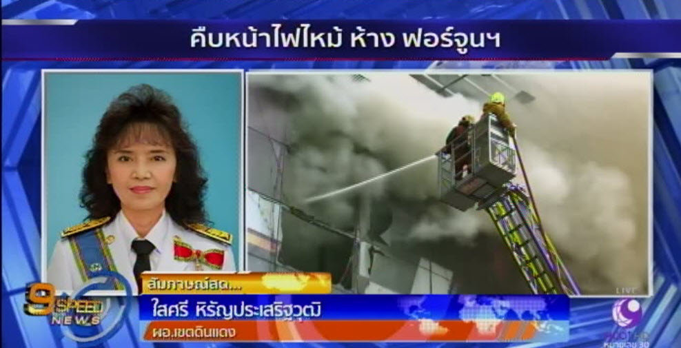 กทม. 20 มี.ค. – “ใสศรี หิรัญประเสริฐวุฒิ” ผอ.เขตดินแดง ให้สัมภาษณ์ทางโทรศัพท์กับสำนักข่าวไทย กรณีเหตุไฟไหม้ศูนย์การค้าฟอร์จูนทาวน์ ถนนรัชดาภิเษก ระบุสาเหตุไฟไหม้ครั้งนี้ต้องรอกองพิสูจน์หลักฐานเข้าตรวจสอบ เบื้องต้นคาดเกิดจากไฟฟ้าลัดวงจร เนื่องจากต้นเพลิงเกิดจากร้านขายเครื่องเสียง บริเวณชั้น 3 ของห้าง ส่วนความเสียหายยังประเมินไม่ได้ ขณะที่การจราจรบริเวณโดยรอบ รถชะลอตัวดูเหตุการณ์. – สำนักข่าวไทย