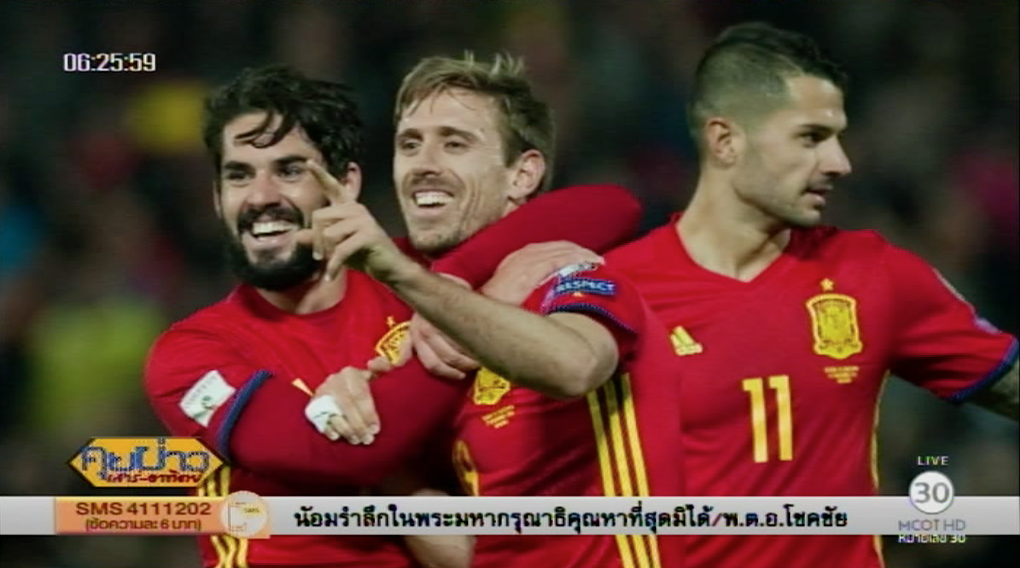 ผลฟุตบอลโลก 2018 รอบคัดเลือก โซนยุโรป กลุ่ม G เมื่อคืนที่ผ่านมา ทีมชาติสเปน ที่แม้จะมีนักเตะบาดเจ็บหลายคน แต่ก็ไม่ทำให้กองเชียร์ผิดหวัง เปิดบ้านถล่ม มาซิโดเนีย 4-0 ได้ประตูจาก ดาร์โก เวลคอฟสกี ทำเข้าประตูตัวเองนาทีที่ 34, บิโตโล นาทีที่ 63, นาโช มอนเรอัล นาทีที่ 84 และ อาริตซ์ อาดูริซ นาทีที่ 85 ทำให้ “กระทิงดุ” มี 10 คะแนนจาก 4 นัดนำเป็นจ่าฝูง ส่วน มาซิโดเนีย ยังไม่มีแต้มอยู่รองบ๊วย