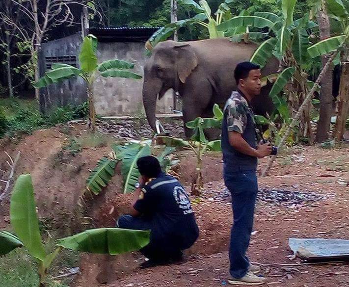 นายสัมพันธ์ ผลโพธิ์ หัวหน้าอุทยานแห่งชาติเขาชะเมา-เขาวง จ.ระยอง ได้รับแจ้งจากนายทรรมสักดิ์ เลาหกัยกุล กำนันตำบลน้ำเป็น อ.เขาชะเมาว่า พบช้างป่าเดินออกมาหากินในพื้นที่บ้านมาบช้างนอน หมู่ 3 จึงมอบหมายให้นายโรจนัย ผาสุกธนกาญจน์ ผู้ช่วยหัวหน้าอุทยานฯ ประสานกับตำรวจ สภ.น้ำเป็น อพปร.และชุดรักษาความปลอดภัยหมู่บ้านเข้าพื้นที่ติดตามและพบช้างป่าเพศผู้ อายุประมาณ 30-40 ปี ยืนกินใบไม้ใกล้สระน้ำริมสวนยางพารา เจ้าหน้าที่ได้เฝ้าระวังพื้นที่ไว้ไม่ให้ช้างเข้าใกล้บ้านเรือน และพยายามต้อนกลับเข้าป่า