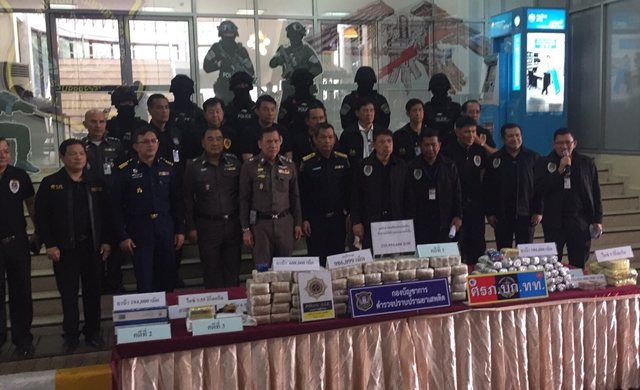 กทม.18 มี.ค.- ตำรวจ ปส.โชว์ผลงานจับกุมขบวนการค้ายาเสพติด 3 คดีสำคัญ ยึดของกลางยาบ้ารวมกว่า 1,000,000 เม็ด ไอซ์อีก 8 กิโลกรัม