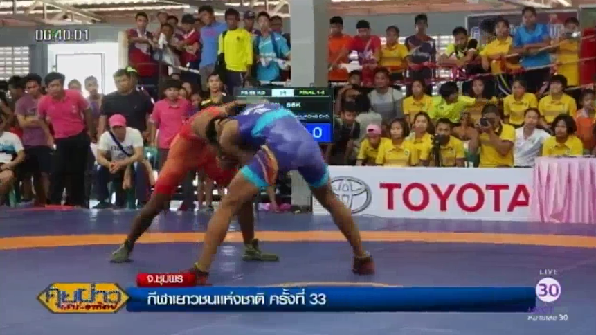 มวยปล้ำ ในร่มที่ยิมเนเซียม 1 สถาบันการพลศึกษาวิทยาเขตชุมพร ชิง 8 เหรียญทอง โดยประเภทฟรีสไตล์ – ชาย น้ำหนักไม่เกิน 69 กก. อนุพงษ์ เชอร์รัมย์ จากศรีษเกส ที่เป็นแชมป์เก่า 2 สมัยซ้อน ดีกรีทีมชาติไทย ชุดสีน้ำเงิน ไล่ปล้ำทำคะแนนเอาชนะ มนตรี วรรณธาดา จากอุบลราชธานี 4-0 คว้าเหรียญทองเป็นสมัยที่ 3 ไปครอง ได้สำเร็จ