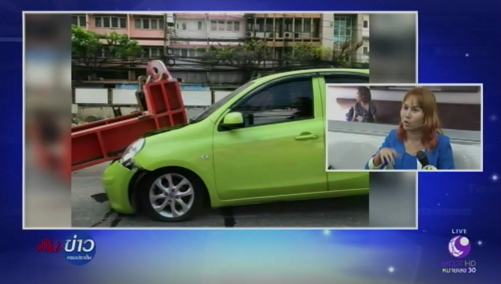 นางสาวสุพรรณี ลาสุดี อายุ 33 ปี พนักงานคลินิกเสริมความงาม ย่านรัชดา เจ้าของรถนิสสันมาร์ช เปิดเผยว่า ขณะเกิดเหตุได้ขับรถจะไปทำงานย่านรัชดาใช้เส้นทางพหลโยธินฝั่งขาเข้า เมื่อถึงจุดเกิดเหตุ มีเศษหิน และเหล็กตกใส่กระโปรงรถ จึงเบรครถ ก่อนจะมีแท่นเหล็กขนาดใหญ่หล่นลงมาทับบริเวณหน้ารถของตนเอง และด้วยความตกใจ จึงพยามจะลงรถ ซึ่งตกใจกลัวมาก ตัวสั่นไปหมด คิดว่าวินาทีนั้นจะไม่ได้กลับไปเห็นหน้าลูกแล้ว นึกถึงสิ่งศักดิ์สิทธิ์ให้ช่วยด้วย ซึ่งตนเองได้ห้อยพระพิฆเนศอยู่ที่คอไม่คิดว่าจะโชคดีรอดมาได้หวุดหวิด
