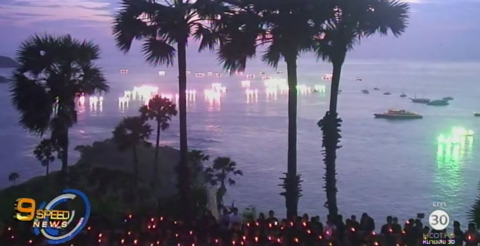บริเวณแหลมพรหมเทพ ตำบลราไวย์ อำเภอเมืองภูเก็ต ประชาชนทุกหมู่เหล่ากว่า 20,000 คน เข้าร่วมกิจกรรมจุดเทียนถวายความอาลัยแด่ พระบาทสมเด็จพระปรมินทรมหาภูมิพลอดุลยเดช ในโอกาสครบ 30 วัน แห่งการเสด็จสวรรคต โดยมีขบวนเรือจากส่วนราชการ เอกชน และเรือประมงของชาวบ้านรวม 89 ลำ ประดับตกแต่งไฟ ล่องมาด้านหน้าแหลมพรหมเทพอย่างพร้อมเพรียง เพื่อแสดงออกถึงความจงรักภักดี และน้อมรำลึกในพระมหากรุณาธิคุณอย่างหาที่สุดมิได้ จากนั้นประชาชนได้ร่วมกันร้องเพลง สรรเสริญพระบารมี ดังกึกก้องไปทั่วบริเวณ.-สำนักข่าวไทย