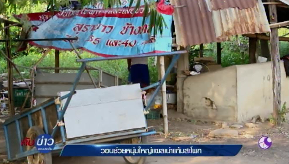 นครปฐม 16 มี.ค.-หนุ่มใหญ่ป่วยเป็นแผลเน่าที่แก้มสะโพก น่าหวาดเสียว เจ็บปวดทรมาน ทำงานไม่ไหว ภรรยาก็หนี ปล่อยทิ้งให้ดูลูก 3 คนตามลำพัง ต้องหนีกลับมาอาศัยนอนในคอกวัว