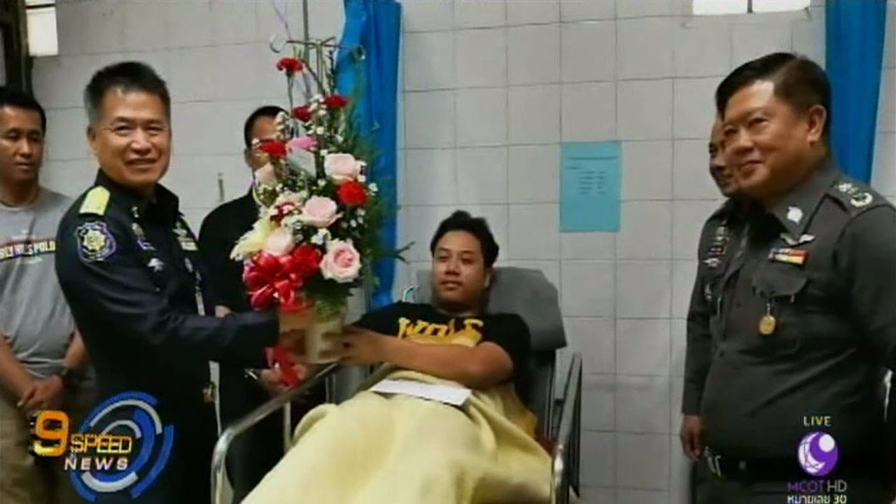 ผู้บัญชาการตำรวจภูธรภาค 5 พร้อมผู้อำนวยการ ป.ป.ส.ภาค 5 เข้าเยี่ยมอาการบาดเจ็บของ ส.ต.ต.ธีรวัฒน์ รัตนแสง หลังถูกขบวนการค้ายาเสพติดขับรถจักรยานยนต์พุ่งชนขณะเข้าสกัดจับ บนถนนบ้านปางฟาน อ.พร้าว จ.เชียงใหม่ จับกุมคนร้ายได้ 1 คน พร้อมของกลางยาบ้า 200,000 เม็ด โดยขณะนี้อยู่ระหว่างขยายผลจับกุมเพื่อนร่วมขบวนการที่หลบหนีไป.-สำนักข่าวไทย