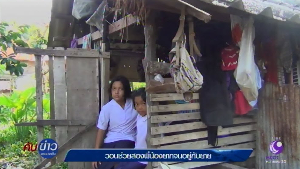 กระบี่ 15 มี.ค.-วอนช่วยเหลือ เด็กหญิงสองพี่น้อง อายุ 7 ขวบและ 10 ขวบ ฐานะยากจนถูกพ่อแม่ทิ้งให้อยู่กับยายวัยชรา อาศัยขนำเล็กๆ เป็นที่หลับนอนสภาพน่าเวทนาหลังคารั่ว ไม่มีห้องน้ำ