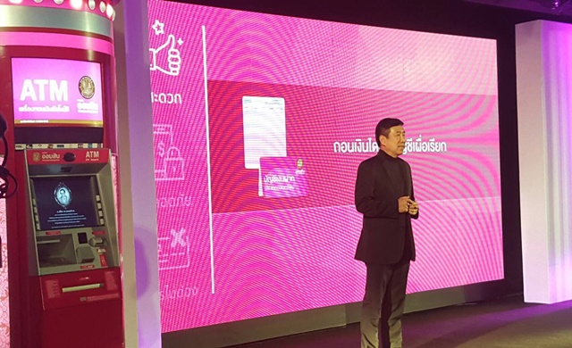 พร้อมกันนี้ยังเปิดตัวธุรกรรมใหม่ “MyMo My Card” พัฒนา Mobile Banking ด้วยการกดเงินสดจากตู้ ATM โดยไม่ต้องมีบัตรตั้งเป้าผู้ใช้บริการถึง 5 ล้านราย ภายใน 3 ปี ช่วยประหยัดต้นทุนธนาคารประมาณร้อยละ 10 คิดเป็นเงินประมาณ 800 ล้านบาทต่อปี สำหรับขั้นตอนการรับบริการนี้ เมื่อสมัคร MyMo แล้ว ลูกค้าสามารถทำรายการผ่านเครือข่ายอินเทอร์เน็ตได้ทั้ง 3G หรือ 4G และ WIFI ให้เข้าสู่ระบบด้วยการ Login ผ่านแอพพลิเคชั่น MyMo บนมือถือ จากนั้นทำรายการถอนเงินสด เลือกบัญชี และจำนวนเงินที่ต้องการ (สูงสุด 5,000 บาทต่อวัน) หน้าจอมือถือจะขึ้นตัวอ่าน QR Code จากนั้นไปที่ตู้ ATM หรือตู้ ADM ธนาคารออมสิน เพื่อทำการถอนเงินสด กดเลือกเมนู “MyMo My Card” ที่หน้าจอแรก แล้วใช้มือถือสแกน QR Code ที่ปรากฎขึ้นที่หน้าจอตู้ ATM ตรวจสอบรายการและยืนยันแล้วรับเงินจากช่องรับเงินสด โดยไม่ต้องมีบัตรอิเล็กทรอนิกส์. – สำนักข่าวไทย
