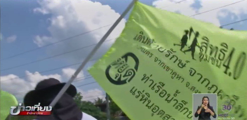 กลุ่มผู้คัดค้านโครงการก่อสร้างท่าเรือน้ำลึกปากบาราเดินเท้าจากชุมชนเขาคูหา อ.รัตภูมิ จ.สงขลา มุ่งหน้าสู่บ้านปากบารา อ.ละงู จ.สตูล รวมระยะทางกว่า 100 กม. เพื่อสื่อสารกับชาวบ้านตลอดสองข้างทางให้ตระหนักถึงผลกระทบต่อสิ่งแวดล้อมและสุขภาพที่จะเกิดขึ้นจากการสร้างท่าเรือน้ำลึก พวกเขาเรียกร้องให้หยุดเวทีแสดงความคิดเห็นครั้งที่ 1 หรือเวที ค.1 ที่จะมีขึ้นในอีก 2 วันนี้ เพราะมองว่าการศึกษาผลกระทบต่อสุขภาพและสิ่งแวดล้อม (EHIA) เป็นเพียงขั้นตอนหนึ่งในการขออนุมัติโครงการเท่านั้น ไม่สอดคล้องกับเจตนารมณ์ปกป้องธรรมชาติและสิ่งแวดล้อม ประชาชนไม่มีส่วนร่วมเต็มที่ แนะนำให้ศึกษาโครงการแลนด์บริดจ์สงขลา-สตูล ร่วมกันทั้งหมด 3 โครงการ ประกอบด้วย โครงการท่าเรือน้ำลึกปากบารา โครงการท่าเรือน้ำลึกสงขลา 2 และโครงการรถไฟรางคู่เชื่อมอันดามัน-อ่าวไทย เพราะการแยกศึกษา EHIA ทำให้ไม่เห็นภาพรวมผลกระทบทั้งหมด จึงขอให้รัฐบาลสั่งหยุดเวที ค.1
