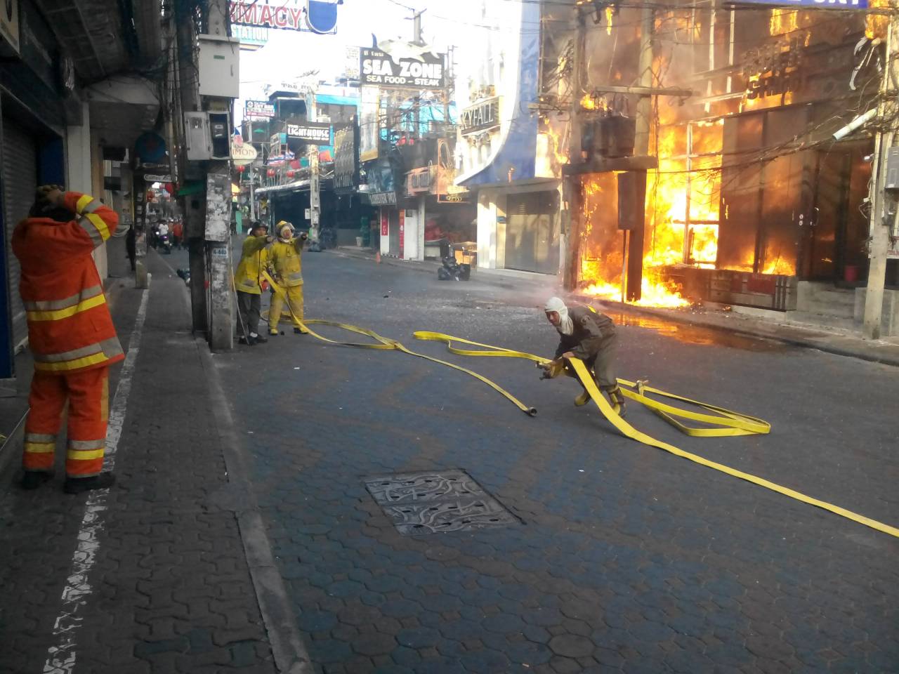 เมื่อเวลา 08.30 น. วันนี้ (15 มี.ค.) พ.ต.อ.ชัชชพล ภัทรศิริพร ผู้กำกับการ (สอบสวน) สภ.เมืองพัทยา จ.ชลบุรี รับแจ้งเหตุเพลิงไหม้ร้านอาหารแนวเพลงร็อก ย่านวอล์กกิ้งสตรีท พัทยาใต้ จึงประสานหน่วยกู้ภัยและรถดับเพลิงเมืองพัทยา นำรถน้ำ 5 คัน เข้าตรวจสอบ ท่ามกลางเพลิงไหม้อย่างหนักและกลุ่มควันดำหนาทึบ เจ้าหน้าที่เร่งฉีดน้ำสกัดกว่า 30 นาที เพลิงจึงสงบ และไม่มีผู้บาดเจ็บ จากการสอบถามแม่บ้านของร้านทราบว่า ขณะทำความสะอาด หลังจากร้านปิดให้บริการ ได้ยินเสียงดังถึง 3 ครั้ง มาจากหม้อแปลงไฟฟ้าหน้าร้าน จากนั้นเปลวเพลิงก็ลุกลามตามมา