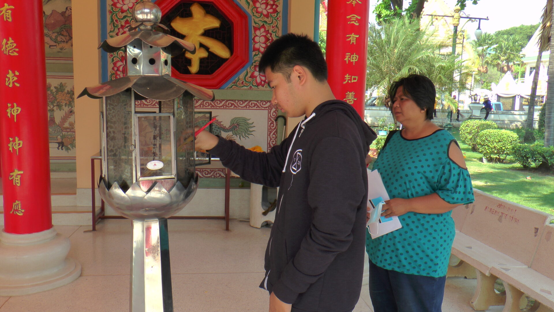 บุรีรัมย์ 14 มี.ค.- ป้าพาน้องคิวจุดธูปไหว้ศาลหลักเมืองบุรีรัมย์ บอกกล่าวแม่ที่เสียชีวิตเมื่อ 2 เดือนที่ผ่านมา พร้อมขอบคุณผู้ใหญ่ใจดีช่วยทุนการศึกษาได้เรียนวิศวะตามฝัน และของดรับเพราะเงินเพียงพอแล้ว