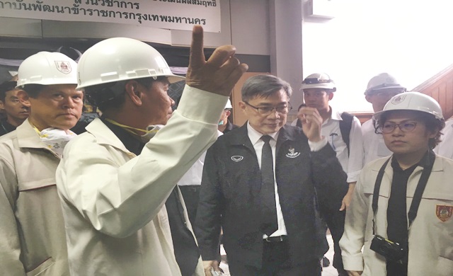 นายภัทรุตม์ ทรรทรานนท์ ปลัดกรุงเทพมหานคร (กทม.) พร้อมด้วยนายธเนศ วีระศิริ นายกวิศวกรรมสถานแห่งประเทศไทย ในพระบรมราชูปถัมภ์ (วสท.) และกองพิสูจน์หลักฐาน เข้าตรวจสอบความเสียหายโครงสร้างอาคาร ภายในห้องปัญญพัฒน์ ศูนย์การเรียนรู้ด้วยตนเอง สถาบันพัฒนาข้าราชการ กทม. ชั้น 4 ศาลาว่าการ กทม. ซึ่งปิดพื้นที่เป็นเขตอันตรายห้ามเข้า