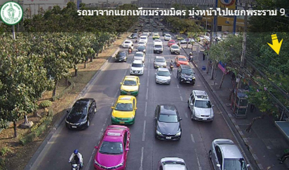 สภาพการจรจร ถนนรัชดาภิเษก ขาเข้า แยกเทียมร่วมมิตร มุ่งหน้าแยกพระราม9 เข้าอโศกมนตรี รถมาก ท้ายสะสมอุโมงค์สุทธิสาร
