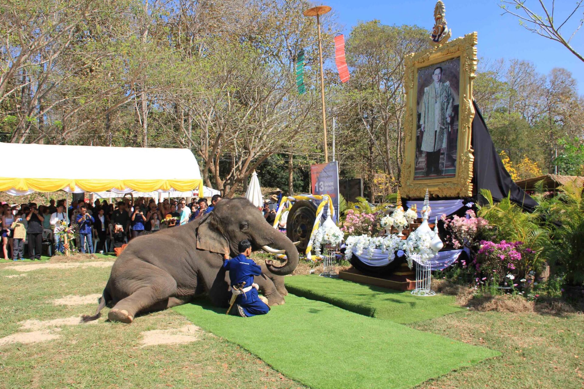 ลำปาง 13 มี.ค.- วันช้างไทย 13 มี.ค. มีความหมายให้ตระหนักถึงการอนุรักษ์สัตว์ประจำชาติ ศูนย์อนุรักษ์ช้างไทยนำช้างทำบุญใส่บาตร พร้อม “พลายปฐมสมภพ” ช้างชื่อพระราชทานหมอบถวายความภักดีแด่องค์ภูมิพล