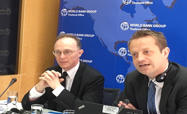 นายลารส์ ซอนเดอร์การ์ด หัวหน้ากลุ่มงานด้านการพัฒนามนุษย์และความยากจน ธนาคารโลก เปิดเผยรายงาน “กลับสู่เส้นทาง : ฟื้นฟูการเติบโตและประกันความมั่งคั่งสำหรับทุกคน” ซึ่งเสนอแนวทางการกำจัดความยากจนในประเทศไทย ว่า ประเทศไทยมีคนยากจนถึง 7.1 ล้านคน วัดจากรายได้ต่ำกว่า 6.2 เหรียญสหรัฐต่อคนต่อวัน หรือต่ำกว่าประมาณ 218 บาทต่อคนต่อวัน และมีประชากรอีก 7 ล้านคน ที่มีรายได้เหนือเส้นความยากจนเพียงร้อยละ 20 และมีความเสี่ยงต่อการกลับไปยากจนอีก ซึ่งส่วนใหญ่อยู่ในภาคตะวันออกเฉียงเหนือ ภาคเหนือ และ 3 จังหวัดชายแดนภาคใต้ นอกจากนี้ การที่เศรษฐกิจไทยเติบโตช้าลงจากเฉลี่ยร้อยละ 7.7 ก่อนปี 2540 เหลือเติบโตร้อยละ 4.2 ในช่วงปี 2543-2556 และร้อยละ 3.2 ในปัจจุบัน ประกอบกับราคาสินค้าเกษตรลดลงถึงร้อยละ 13 ในช่วงปี 2556-2557 ทำให้ปัจจัยสนับสนุนการลดความยากจนหมดไป และคาดว่าต้องใช้เวลามากกว่า 6 ปี ประเทศไทยจึงจะจัดการปัญหาความยากจนหมดลงได้