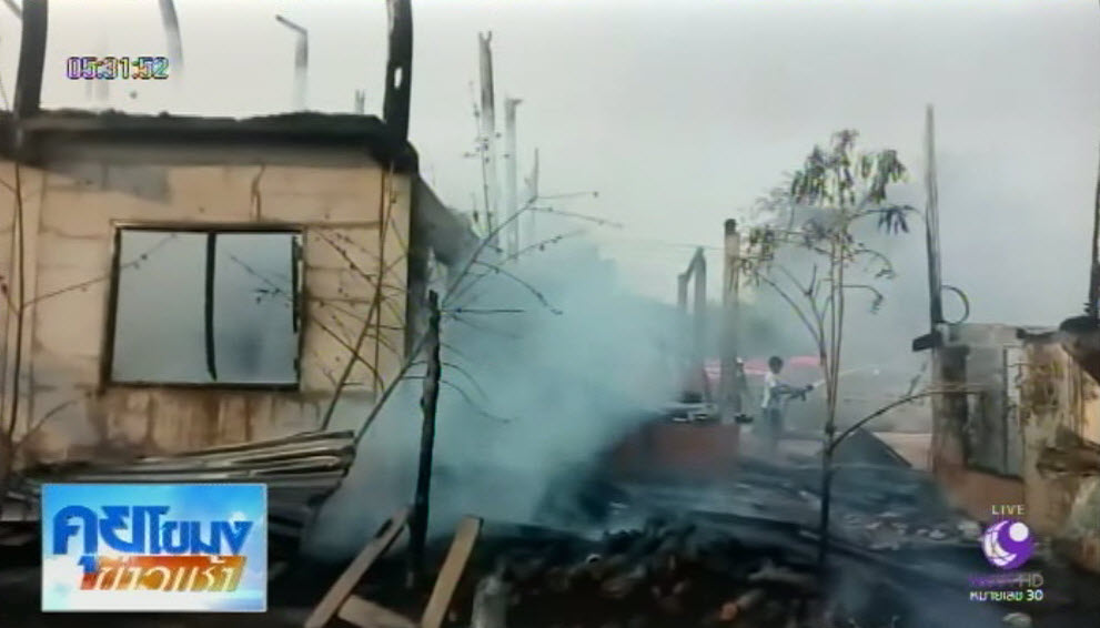 นางคำกอง วงษ์ละคร หนึ่งในเจ้าของบ้านที่ถูกเพลิงไหม้ เล่าว่า ขณะเกิดเหตุอยู่ที่ชั้นล่าง เห็นเพลิงไหม้บ้านนายทองใส พลทรมาตย์ ที่อยู่ติดกัน แล้วลามไหม้บ้านของนายพรชัย ชุ่มเอม จึงรีบวิ่งขึ้นชั้น 2 เพื่อไปเอาเงิน 200,000 บาท ที่ได้จากการขายควายกว่า 10 ตัว โดยนำเงินออกมาได้เพียง 30,000 กว่าบาท ส่วนเงินที่เหลือถูกเพลิงไหม้ทั้งหมด เบื้องต้นคาดว่า สาเหตุเพลิงไหม้เกิดจากไฟฟ้าลัดวงจร มูลค่าความเสียหายรวมประมาณ 2 ล้านบาท. – สำนักข่าวไทย