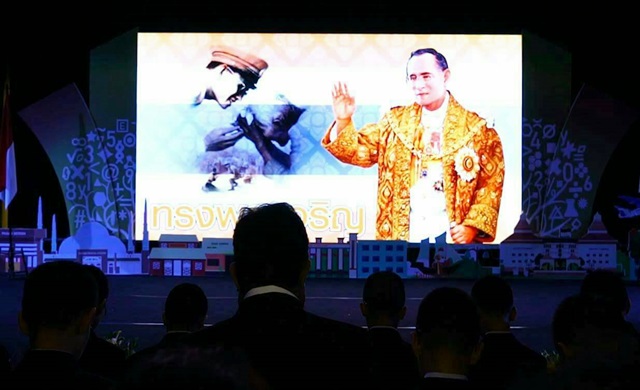 อินโดนีเซีย 12 พ.ย.-เด็กไทยร้องเพลงสรรเสริญพระบารมีดังกึกก้องในเวทีโอลิมปิกคณิต-วิทย์ ที่สาธารณรัฐอินโดนีเซีย ถวายความอาลัยในหลวงรัชกาล ที่9 ด้านเจ้าภาพ-ผู้เข้าแข่งขัน 22ประเทศทั่วโลกร่วมยืนสงบนิ่ง ก่อนเริ่มการแสดงวัฒนธรรมประจำชาติค่ำคืนสุดท้ายของการแข่งขัน