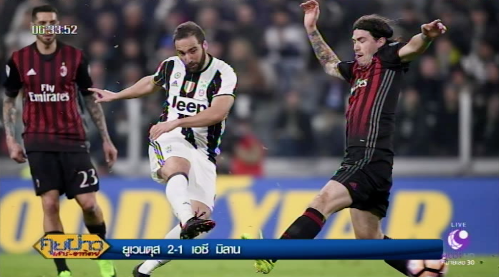ฟุตบอลกัลโช่ เซเรีย อา อิตาลี คู่บิ๊กแมตช์ ยูเวนตุส จ่าฝูง เปิดบ้านเอาชนะ เอซี มิลาน ไป 2-1 ยูเว่นำก่อนจากเมห์ดี เบนาเตีย นาทีที่ 30 จากนั้นคาร์ลอส บัคคา ยิงตีเสมอให้กับ มิลาน นาทีที่ 43 ก่อนที่ครึ่งหลัง ยูเว่ จะมาได้ประตูชัย จากจุดโทษของ เปาโล ดีบาลา นาทีที่ 97 จบเกม ยูเว่ เอาชนะ มิลาน 2-1 เก็บเพิ่มเป็น 70 คะแนนจาก 28 เกม ทำแต้มทิ้งห่าง โรมา รองจ่าฝูง 11 แต้ม แต่แข่งมากกว่า 1 นัด
