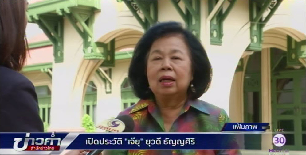 นี่เป็นภาพที่ “เจ๊ยุ” พูดคุยกับนายกรัฐมนตรีเมื่อวันที่ 24 ธันวาคมที่ผ่านมา ซึ่งเป็นภาพที่ประทับใจและตราตรึงกับผู้สื่อข่าวประจำทำเนียบรัฐบาลทุกคน สำหรับประวัติของนางยุวดี ธัญญสิริ ผู้สื่อข่าวอาวุโสประจำทำเนียบรัฐบาล หรือ “เจ๊ยุ” ของน้องๆ ผู้สื่อข่าว เกิดเมื่อปี 2489 จบชั้นมัธยมศึกษาจากโรงเรียนศรีอยุธยา จากนั้นได้เข้ารั้วมหาวิทยาลัยที่คณะวารสารศาสตร์ สาขาสื่อสารมวลชน มหาวิทยาลัยธรรมศาสตร์ รุ่นแรก โดยจบการศึกษาเมื่อปี 2511