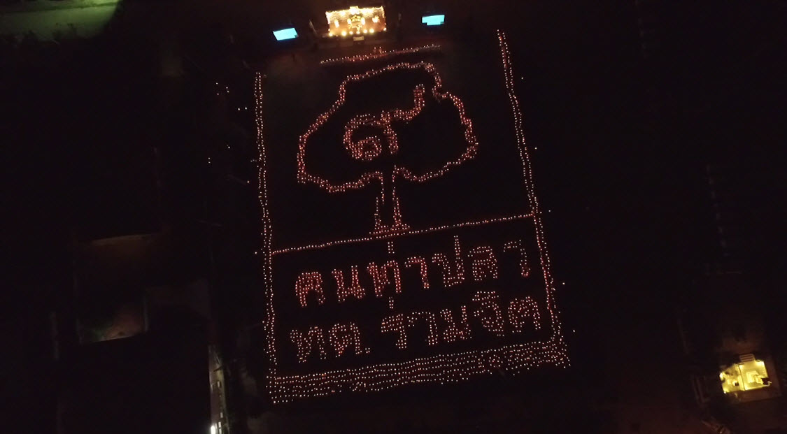 อุตรดิตถ์ 12 พ.ย. – ชาวอำเภอท่าปลา จ.อุตรดิตถ์ กว่า 3,000 คน พร้อมใจจัดกิจกรรมจุดเทียนและร้องเพลงสรรเสริญพระบารมี แปรอักษรต้นไม้ของพ่อ เพื่อแสดงความอาลัยและสำนึกในพระมหากรุณาธิคุณ