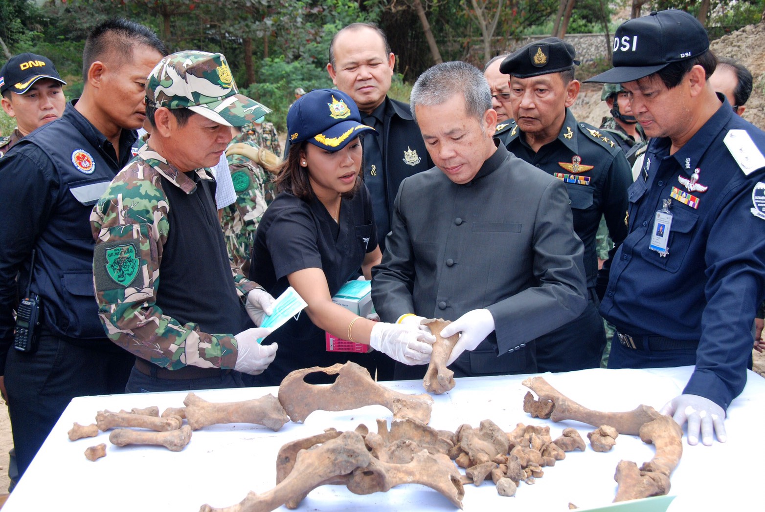 นายธัญญา กล่าวว่า ชุดเฉพาะกิจพญาเสือ ร่วมกับทหาร ตํารวจ ปทส. ฝ่ายปกครอง และปศุสัตว์ ตรวจยึดช้างของนักธุรกิจรายนี้รวม 6 เชือก ตั้งแต่เดือน พ.ค.2559 เนื่องจากตั๋วรูปพรรณไม่ถูกต้อง ต่อมาได้เบาะแสขุดพบซากช้างจนถึงขณะนี้อีก 5 ตัว ถูกฝังอยู่ เชื่อว่าทำเป็นขบวนการใหญ่ และเชื่อมโยงถึงขบวนการล่าช้างป่าเพื่อเอางาและอวัยวะ หรือนำมาสวมรอย ขณะนี้ได้เก็บตัวอย่างดีเอ็นเอจากกระดูกช้าง เพื่อนำไปพิสูจน์ที่ห้องปฏิบัติการของกรมอุทยานฯ คาดว่า 2 สัปดาห์ จะทราบผลที่ไปที่มาว่าช้างถูกต้องหรือไม่ และมีการสวมตั๋วรูปพรรณหรือไม่อย่างไร