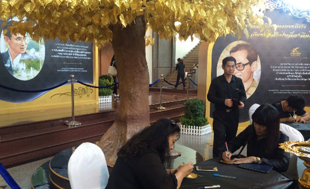 ขณะที่ บริเวณท้องสนาม ประชาชนจากทุกสารทิศ ยังเดินทางมาเข้าคิว รอเข้ากราบถวายบังคมพระบรมศพ พระบาทสมเด็จพระปรมินทรมหาภูมิพลอดุลยเดช ในพระบรมมหาราชวัง ต่อเนื่องตลอดทั้งวัน ถึงแม้วันนี้จะมีแดดแรง แต่ด้วยอุณหภูมิที่ลดลง ทำให้สภาพอากาศไม่ร้อนมากนัก แต่เจ้าหน้าที่ยังคงประชาสัมพันธ์ให้ประชาชนเตรียมความพร้อมของร่างกาย โดยมีอาสาสมัครเดินแจกจ่ายน้ำดื่ม และยาดมให้ประชาชนตามเต้นท์พักคอย
