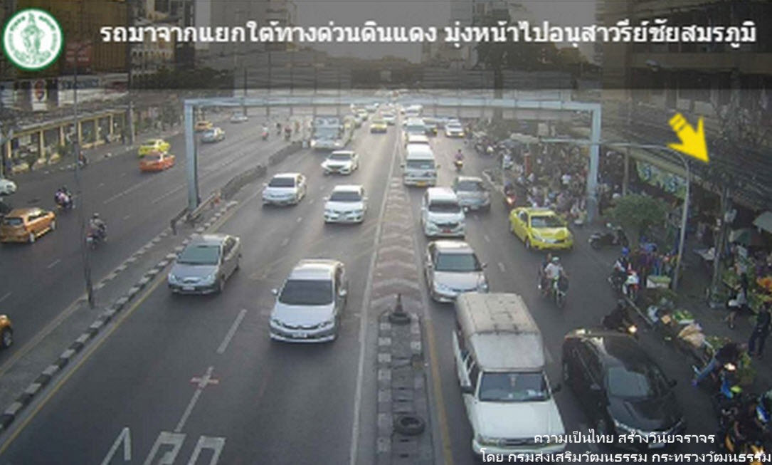 ถนนดินแดง ขาเข้า ไปอนุสาวรีย์ชัยฯ ปริมาณรถมาก เคลื่อนตัวตามกันได้เรื่อยๆ