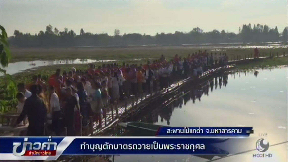 ส่วนชาวมหาสารคามและนักท่องเที่ยวพร้อมใจกันนิมนต์พระสงฆ์ 89 รูป จากวัดดาวดึงส์ และวัดต่างๆ ใน อ.แกดำ ประกอบพิธีทางศาสนา ทำบุญตักบาตรข้าวสารอาหารแห้ง บริเวณสะพานไม้แกดำ ซึ่งมีอายุกว่า 100 ปี เพื่อถวายเป็นพระราชกุศลแด่พระบาทสมเด็จพระปรมินทรมหาภูมิพลอดุลยเดช ด้วยน้อมสำนึกในพระมหากรุณาธิคุณ