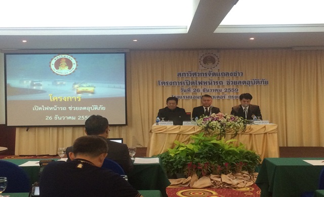 รร.แอมบาสเดอร์ 26 ธ.ค. – สภาวิศวกรชวนเปิดไฟหน้ารถเพื่อช่วยลดอุบัติเหตุบนท้องถนนในช่วงวันหยุดยาว พร้อมสานต่อให้บริษัทผู้ผลิตรถยนต์ในไทยติดตั้ง DRL ทุกคัน