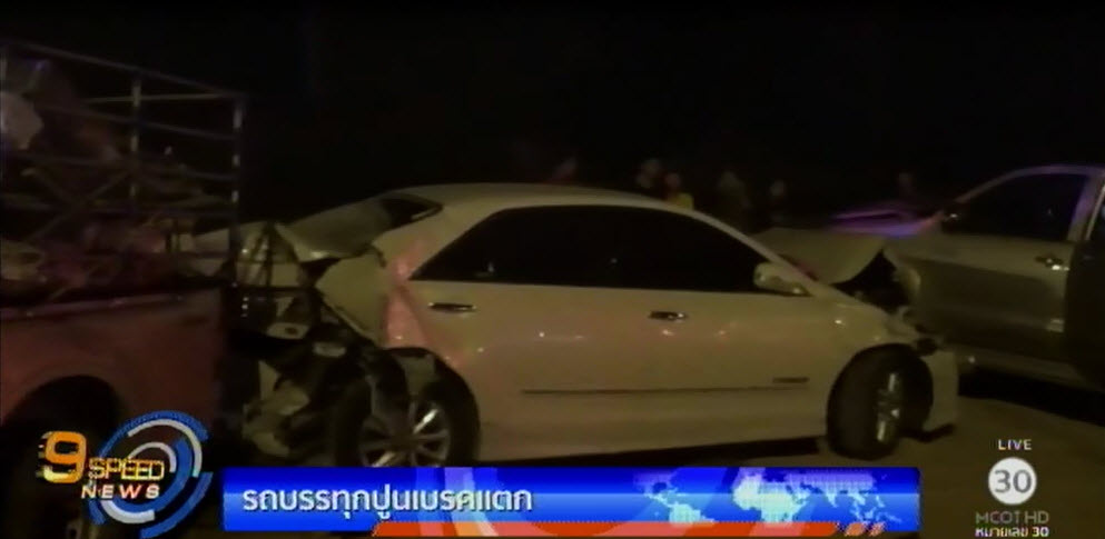สระบุรี 25 ธ.ค.- 10 ล้อ บรรทุกปูน เบรกแตก ชนรถพัง 9 คัน บริเวณถนนมิตรภาพ จ.สระบุรี มีผู้บาดเจ็บเล็กน้อย 2 คน