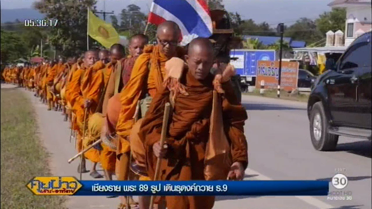 เชียงราย 25 ธ.ค.-คณะสงฆ์เชียงราย 89 รูป เดินธุดงค์ธรรมจาริกมุ่งหน้าพระบรมมหาราชวัง ถวายเป็นพระราชกุศลแด่พระบาทสมเด็จพระปรมินทรมหาภูมิพลอดุลยเดช ล่าสุดมาถึง อ.วังเหนือ จ.ลำปาง แล้ววานนี้