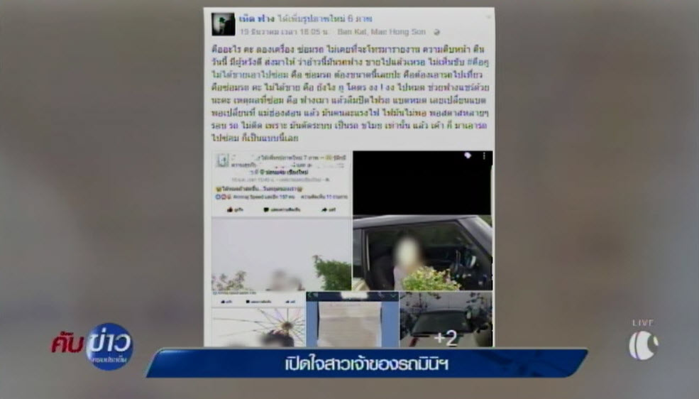 แม่ฮ่องสอน 22 ธ.ค.-สาวเจ้าของมินิคูเปอร์ เปิดใจ ดีใจได้รถคืน ไม่เอาเรื่องช่างแอบนำรถเที่ยว แต่ขอเช็กสภาพรถตามรายการซ่อม