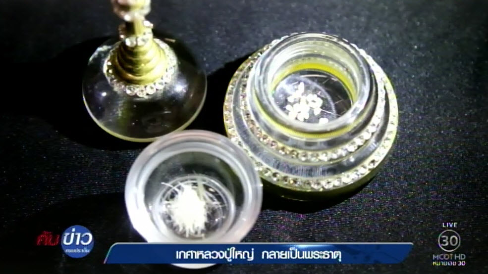 ขณะที่พระลูกวัด รูปหนึ่ง เปิดเผยว่า มีโอกาสได้โกนผมให้หลวงปู่ใหญ่ ก็ได้เก็บเส้นผมหลวงปู่ใหญ่ไว้ และหลังหลวงปู่ใหญ่ละสังขาร เส้นผมที่เก็บไว้ในโหลพลาสติกก็เริ่มจับตัวเป็นก้อน แต่ยังไม่แปรเป็นพระธาตุ.-สำนักข่าวไทย