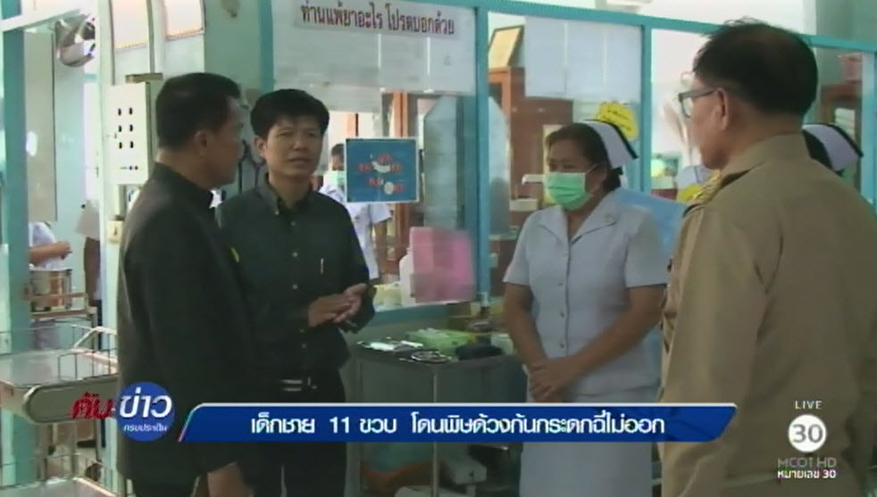 เมื่อเวลา 14.30 น.วันที่ 21 ธค.59 ที่ รพ.สวี อ.สวี จ.ชุมพร นายณรงค์ พลละเอียด ผวจ.ชุมพร เดินทางเข้าเยี่ยมอาการ ดช.วัย11 ขวบ นักเรียนชั้นประถมศึกษา ปีที่ 5 ที่โดนพิษของแมลงด้วงก้นกระดก เข้าที่อวัยวะเพศจนมีอาการหนักถึงขั้น ปัสสาวะไม่ออก