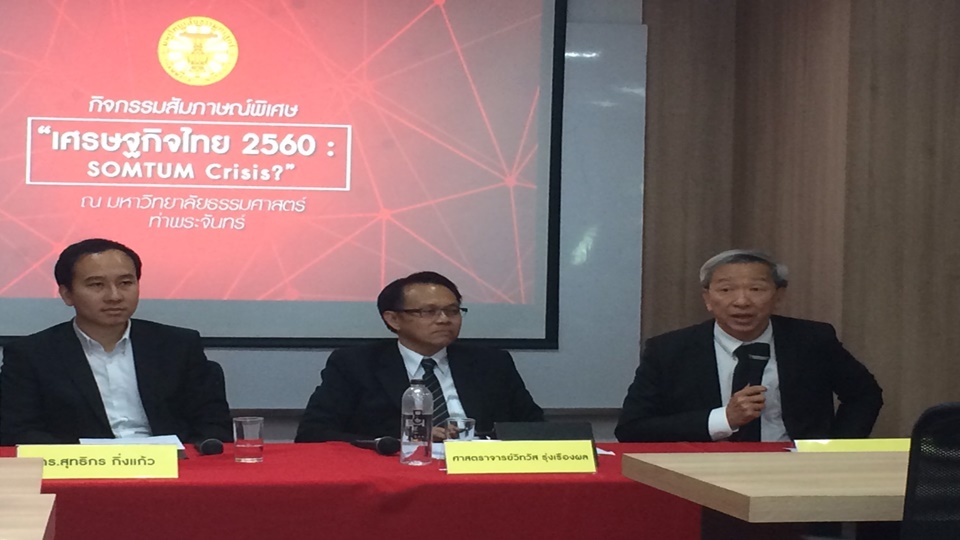 คณบดีคณะเศรษฐศาสตร์ มหาวิทยาลัยธรรมศาสตร์ (มธ.) กล่าวในงานสัมมนา “เศรษฐกิจไทย 2560 : SOMTUM Crisis?!?” ว่า เศรษฐกิจไทยยังไม่อยู่ในภาวะวิกฤติ ภาพรวมปีนี้ยังมีแนวโน้มขยายตัวต่อเนื่อง