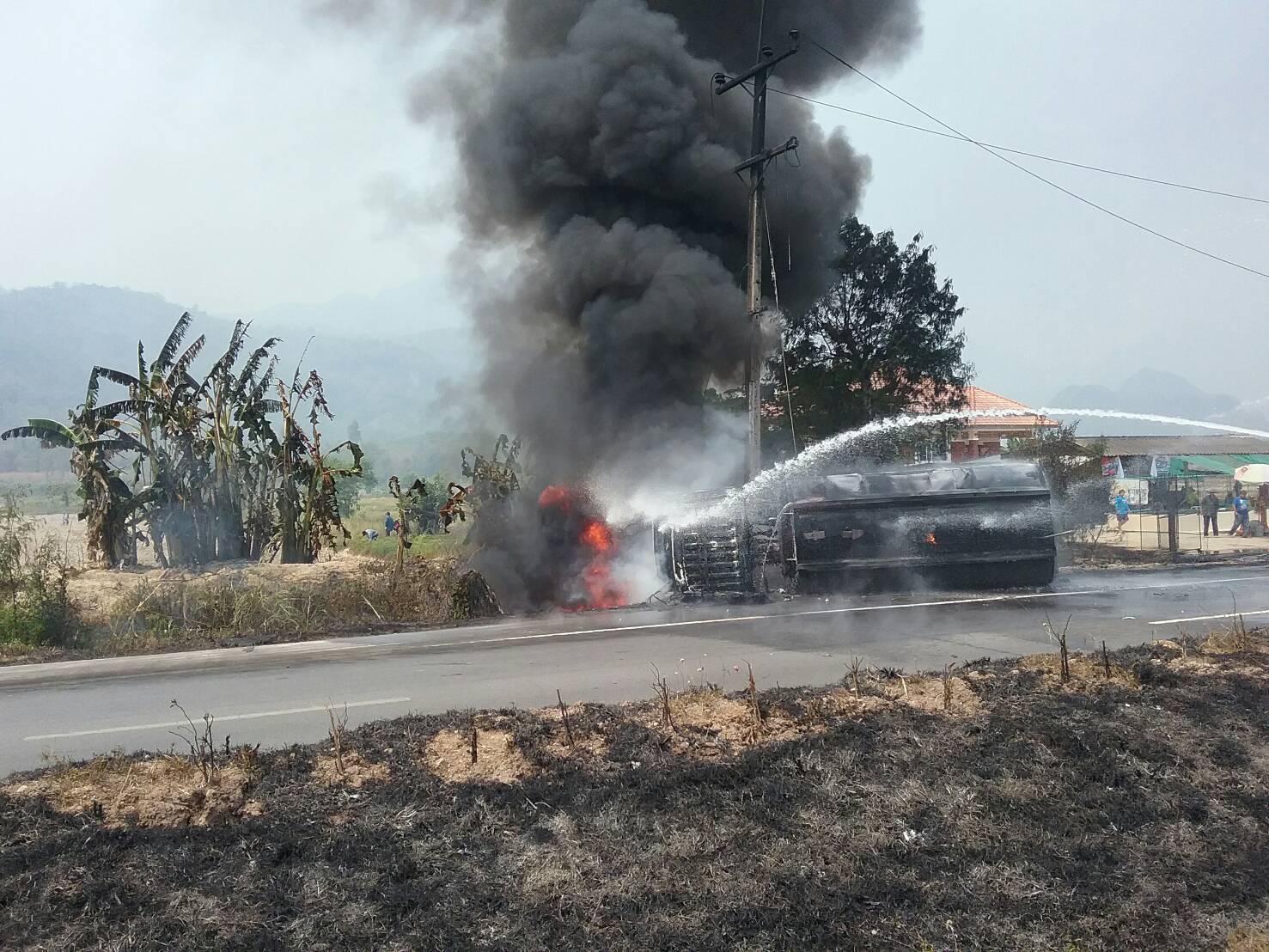 เมื่อเวลา 13.00 น. (20 มี.ค.) เกิดเหตุรถบรรทุก 6 ล้อ ทะเบียน 81-2859 เชียงราย เสียหลักไฟลุกไหม้บนถนนพหลโยธิน สายแม่จัน-แม่สาย ต.ห้วยใคร้ อ.แม่สาย จ.เชียงราย เจ้าหน้าที่ดับเพลิงเทศบาลตำบลแม่สาย เทศบาลตำบลแม่จัน และเทศบาลตำบลห้วยใคร้ นำรถน้ำและรถโฟม 5 คัน ฉีดระงับเหตุนานกว่า 1 ชั่วโมง จึงควบคุมเพลิงไว้ได้ ไม่มีผู้บาดเจ็บหรือเสียชีวิต
