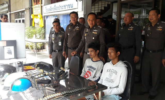 นายอดิศักดิ์ พจุไทย อายุ 18 ปี, นายสุรเชษฐ์ อินสวัสดิ์ อายุ 18 ปี และเยาวชนอายุ 17 ปี ถูกตำรวจสืบสวน สน.บางคอแหลม จับพร้อมรถจักรยานยนต์ฮอนด้า พีซีเอ็กซ์ 2 คัน พร้อมอุปกรณ์การโจรกรรม เช่น เหล็กแหลม บล็อคตัวที และอาวุธปืนไทยประดิษฐ์ 1 กระบอก ที่บ้านพักในซอยสาธร 11 เขตสาธร