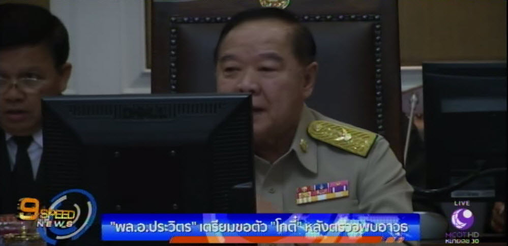 พล.อ.ประวิตร วงษ์สุวรรณ รองนายกรัฐมนตรี ฝ่ายความมั่นคง เปิดเผยถึงการพบอาวุธสงครามจำนวนมากที่บ้านเครือข่ายนายวุฒิพงษ์ กชธรรมคุณ หรือโกตี๋ ใน จ.ปทุมธานี เมื่อวันเสาร์ที่ผ่านมา เนื่องจากมีบุคคลให้ข้อมูล และเจ้าหน้าที่ได้ติดตามข่าวอย่างต่อเนื่อง ไม่ใช่การจัดฉาก ยืนยันต้องขอตัวโกตี๋ จากทางการลาว เพราะเป็นเรื่องที่ทำให้เกิดความวุ่นวายในบ้านเมือง