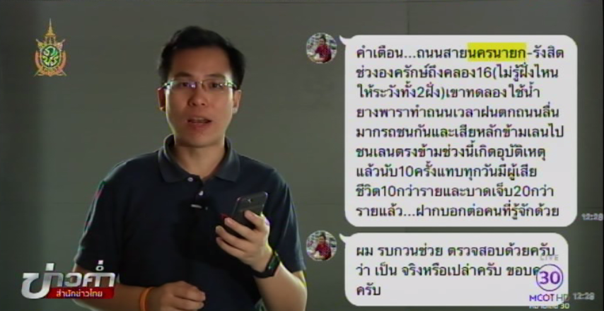 กรุงเทพฯ 7 ก.ค.-บนโซเชียลมีการแชร์เตือนให้ระวังถนนในจังหวัดนครนายก เกิดอุบัติเหตุเพราะลาดน้ำยางพารา เรื่องนี้จริงหรือไม่ ไปตรวจสอบกับศูนย์ชัวร์ก่อนแชร์.-สำนักข่าวไทย