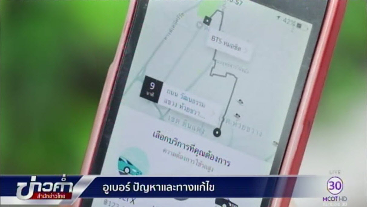 “ทางเดียวกัน ไปด้วยกัน” วันนี้ทีมข่าวทดลองเรียกรถผ่านแอพพลิเคชั่นอูเบอร์ จาก อสมท ไปยังบีทีเอส หมอชิต หลังกดตกลง ระบบจะคำนวณระยะทาง เวลา และค่าบริการให้ ผ่านไปเพียง 8 นาที ผู้ให้บริการจากอูเบอร์ก็มารับ