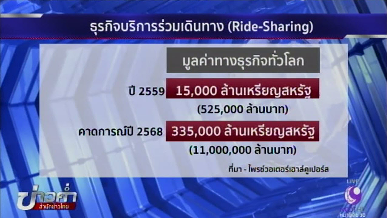 ไพรซ์วอเตอร์เฮาส์คูเปอร์สคาดว่า ธุรกิจไรด์-แชริ่ง (Ride-Sharing) หรือบริการร่วมเดินทางอย่างอูเบอร์ จะสร้างมูลค่าทั่วโลกที่ 15,000 ล้านดอลลาร์สหรัฐ หรือราว 525,000 ล้านบาท ในปี 2559 และเพิ่มเป็น 335,000 ล้านดอลลาร์สหรัฐ หรือราว 11 ล้านล้านบาท ในปี 2568 หรืออีก 8 ปีข้างหน้า
