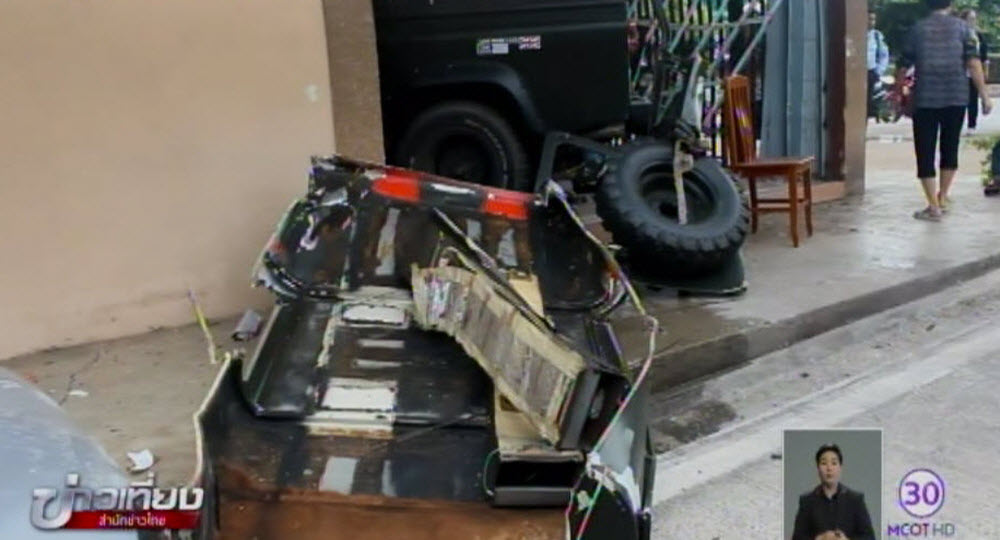 ส่วนคนขับรถจี๊ปคันนี้คือ นายเบญจะ มหาบุตร อายุ 42 ปี ได้รับบาดเจ็บศีรษะแตก ให้การว่า ขณะที่ขับรถมาเกิดเบรกแตก ซึ่งใกล้กับสี่แยกไฟแดง มีรถจอดรออยู่จึงตัดสินใจหักหลบซ้าย พุ่งเข้าข้างทางจนไปชนท้ายรถตู้ที่ออกมาจากซอย แต่ด้วยความเร็วทำให้รถพุ่งต่อไปจนชนบ้านหลังดังกล่าว.-สำนักข่าวไทย