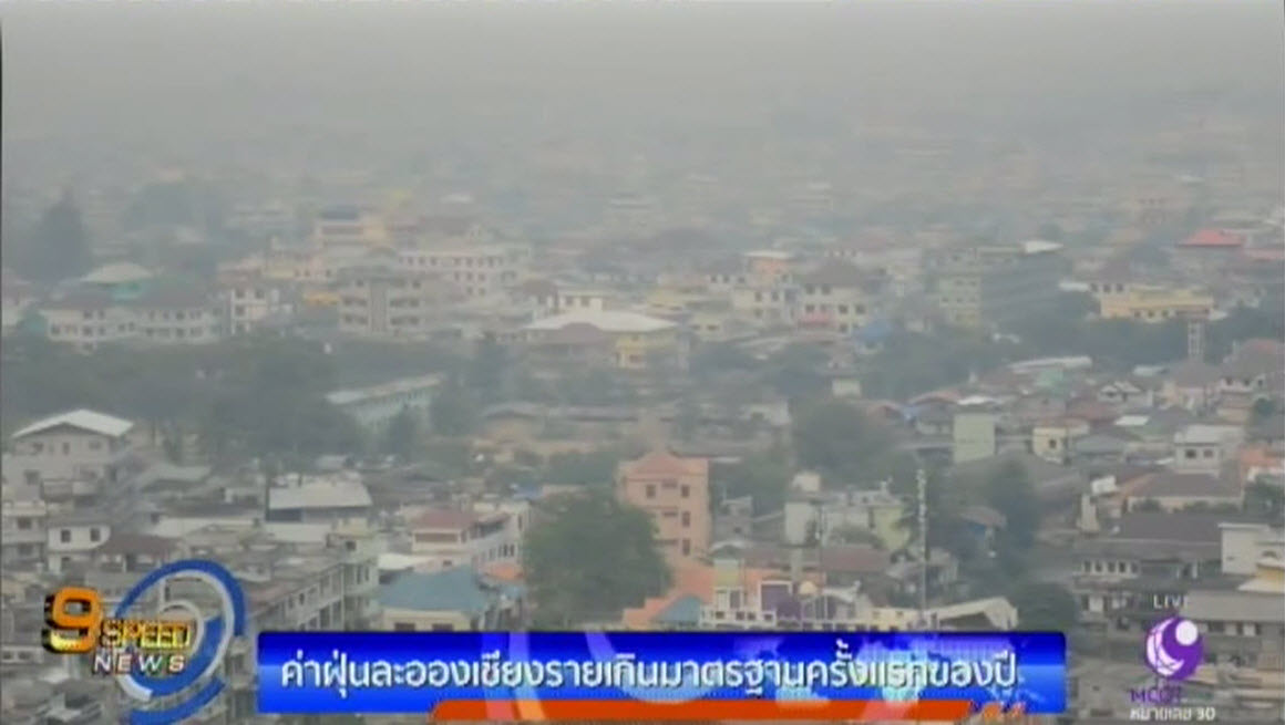 หมอกควันจากไฟป่าปกคลุม จ.เชียงราย สูงสุดครั้งแรกของปีนี้ โดยเมื่อช่วงเที่ยงที่ผ่านมา วัดคุณภาพอากาศที่หน้าสำนักงานสาธารณสุขอำเภอแม่สาย พบว่าค่าฝุ่นละอองขนาดไม่เกิน 10 ไมครอน สูงถึง 131 ไมโครกรัม/ลูกบาศก์เมตร เกินค่ามาตรฐาน คือ 120 ไมโครกรัม/ลูกบาศก์เมตร และยังมีแนวโน้มเพิ่มสูงขึ้นอย่างต่อเนื่อง เป็นผลจากอากาศที่ร้อนจัด และมีไฟป่าในประเทศเพื่อนบ้าน