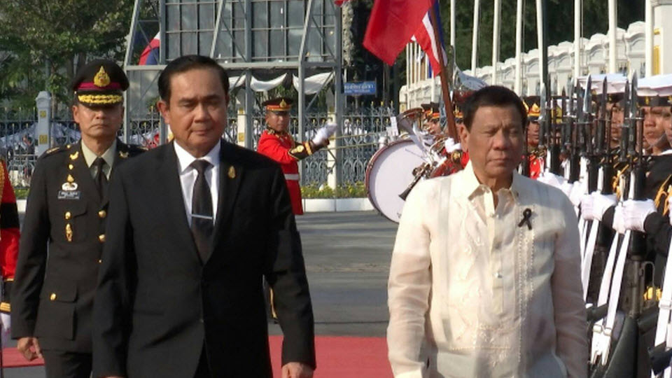 ผู้สื่อข่าวรายงานว่า เวลา 16.25 น. วันนี้ (21 มี.ค.) พล.อ.ประยุทธ์ จันทร์โอชา นายกรัฐมนตรี ให้การต้อนรับนายโรดริโก โรอา ดูเตอร์เต ประธานาธิบดีแห่งสาธารณรัฐฟิลิปปินส์ ซึ่งเดินทางเยือนไทยอย่างเป็นทางการระหว่างวันที่ 20-22 มีนาคม ในฐานะแขกของรัฐบาล และนับเป็นการเดินทางเยือนประเทศไทยอย่างเป็นทางการครั้งแรก นับตั้งแต่ประธานาธิบดีดูเตอร์เต เข้ารับตำแหน่งเมื่อเดือนมิถุนายน 2559 มีวัตถุประสงค์เพื่อกระชับความสัมพันธ์ระหว่างไทยกับฟิลิปปินส์