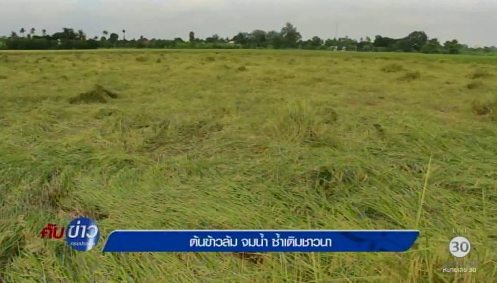 หลังฝนตกหนักติดต่อหลายวันทำให้นาข้าวของชาวนาหมู่ที่ 7 ต.ป่างิ้ว จ.อ่างทอง อยู่ในสภาพจมน้ำ ต้นข้าวล้มเสียหายเป็นจำนวนมาก ชาวนาต้องเร่งนำเครื่องสูบน้ำออกจากแปลงนาเพื่อที่จะรักษาส่วนที่เหลือไว้แต่จากสภาพฝนที่ยังคงตกต่อเนื่องทำให้ข้าวเน่าเสียหาย ทำให้ชาวนาหลายรายถอดใจปล่อยต้นข้าวจมน้ำเนื่องจากสู้กับค่าน้ำมันที่จะต้องนำมาใช้จ่ายในแต่ละวันไม่ไหว