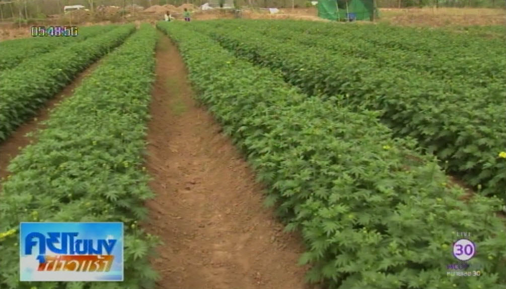 ต้นดาวเรืองในแปลงขนาด 1 ไร่ ของคุณเกรียงไกร สร้อยตะคุ เกษตรกรตำบลตูม อ.ปักธงชัย จ.นครราชสีมา เริ่มผลิบาน อีก 15 วันจะตัดขายได้ คุณเกรียงไกร กล่าวว่า อายุเก็บเกี่ยวของดาวเรืองประมาณ 1 เดือนถึง 1 เดือนครึ่ง คาดว่าจะทำรายได้ให้ประมาณ 50,000 บาท