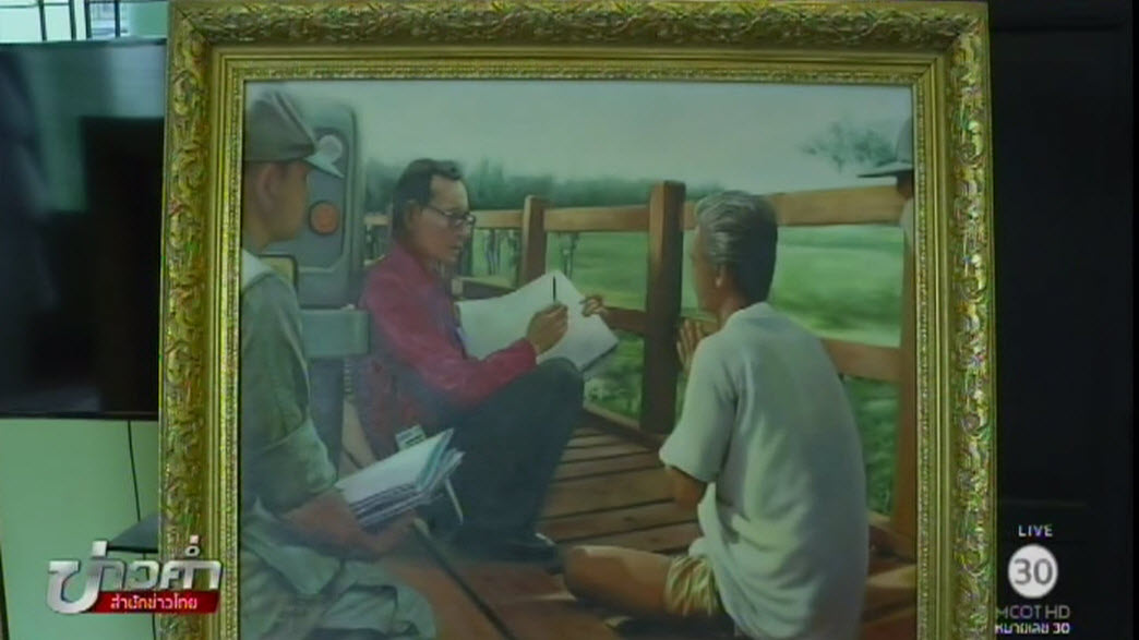 พระบรมสาทิสลักษณ์พระบาทสมเด็จพระปรมิทรมหาภูมิพลอดุลยเดช ประทับบนสะพานไม้ข้างรถพระที่นั่งเพื่อทรงซักถามปัญหาความเดือดร้อนของราษฎร ขณะเสด็จพระราชดำเนินไปหมู่บ้านแห่งหนึ่งใน จ.นราธิวาส เมื่อปี 2524 โดยไม่สนพระราชหฤทัยต่อความยากลำบาก เป็น 1 ใน 9 ภาพที่ได้รับการคัดเลือกเพื่อไปจัดแสดงที่สำนักงานใหญ่ องค์การสหประชาชาติ ประเทศสหรัฐอเมริกา